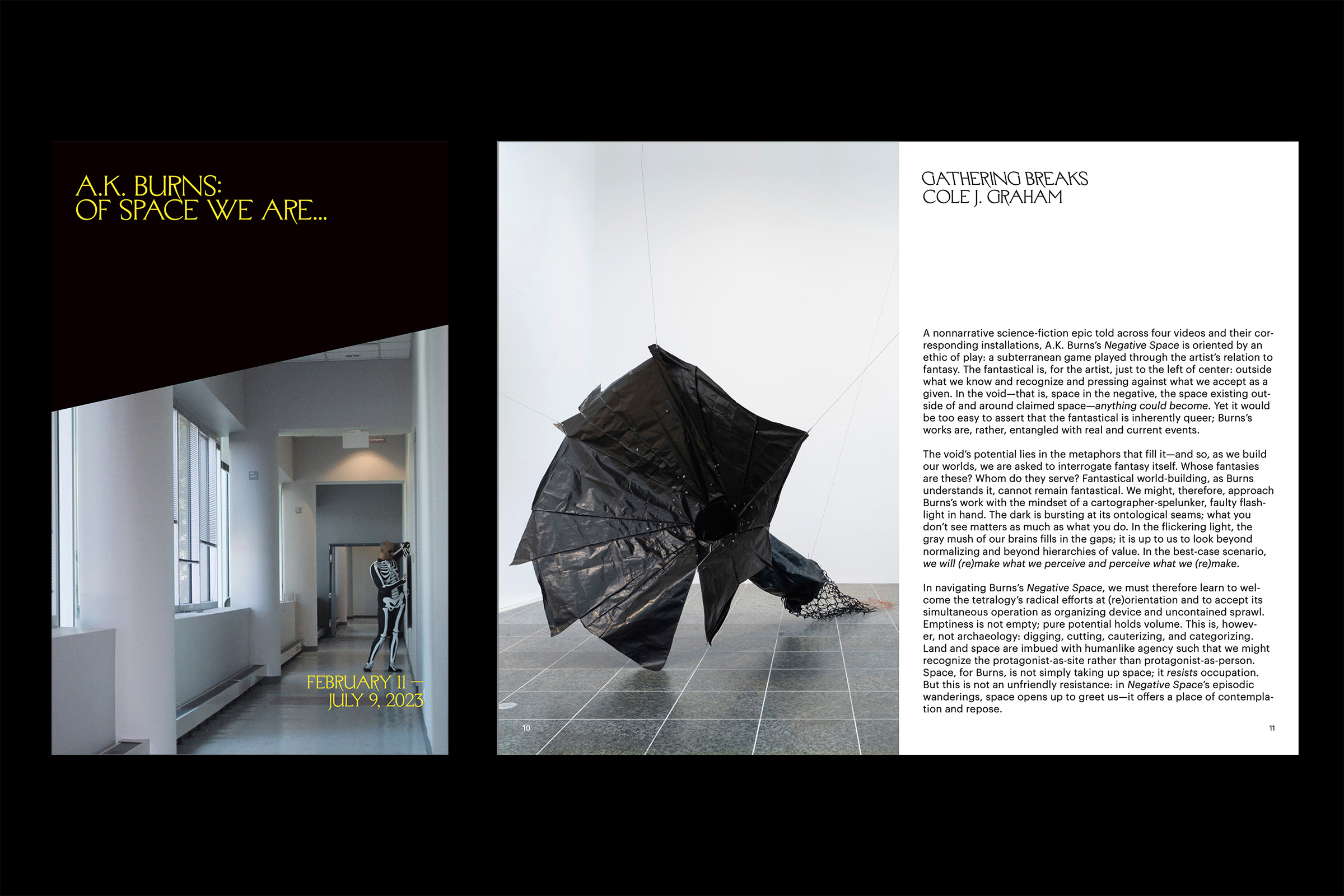 A.K. Burns: Of Space We Are..., an exhibition identity and gallery guide for the Wexner Center for the Arts. -