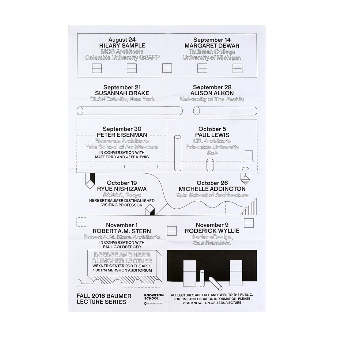 Knowlton School Lecture Series, posters and graphics for the Knowlton School of Architecture Baumer Lecture Series.