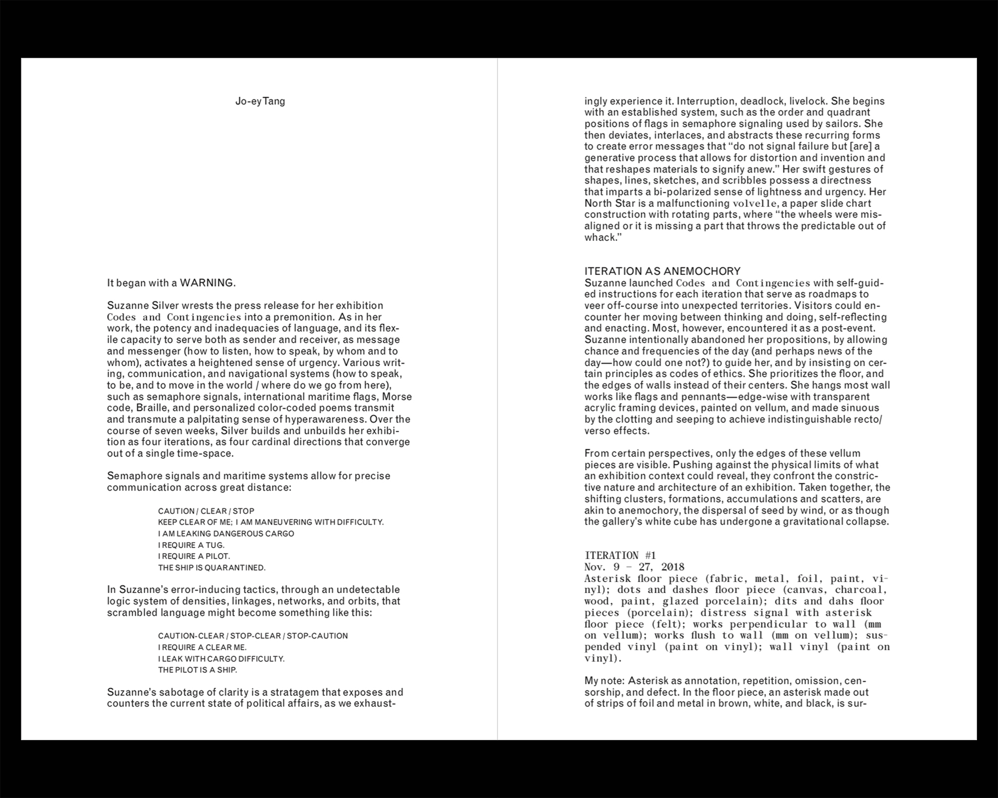 Suzanne Silver: Codes & Contingencies, an exhibition catalogue for the Beeler Gallery. -